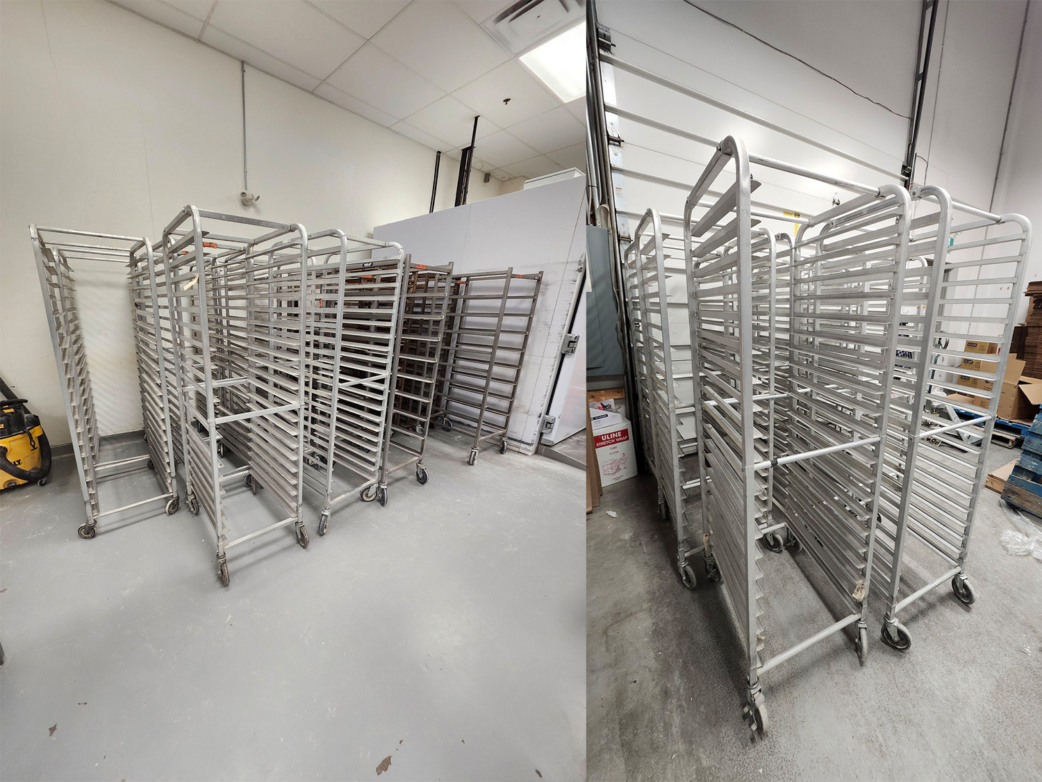 - Large qty. of aluminum mobile pan racks