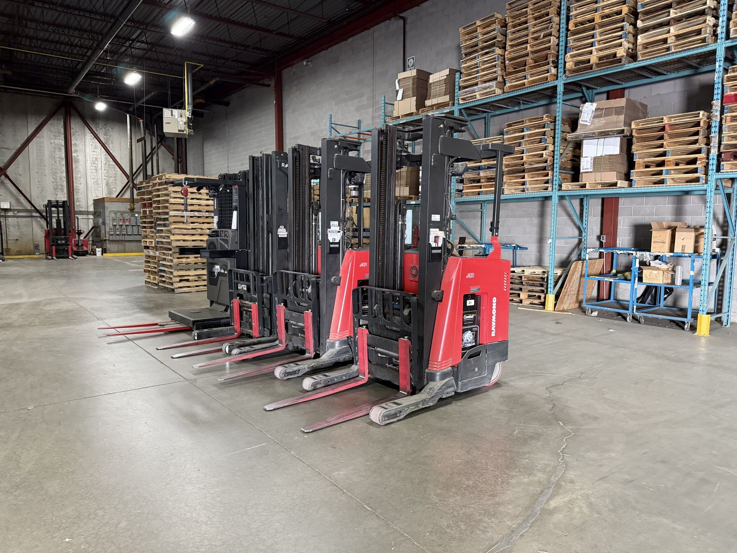 • (5) 2007 Raymond EASI-R30TT electric reach trucks (24V) w/ 3,000 lbs cap, 231″ lift, side shift, & 24” reach