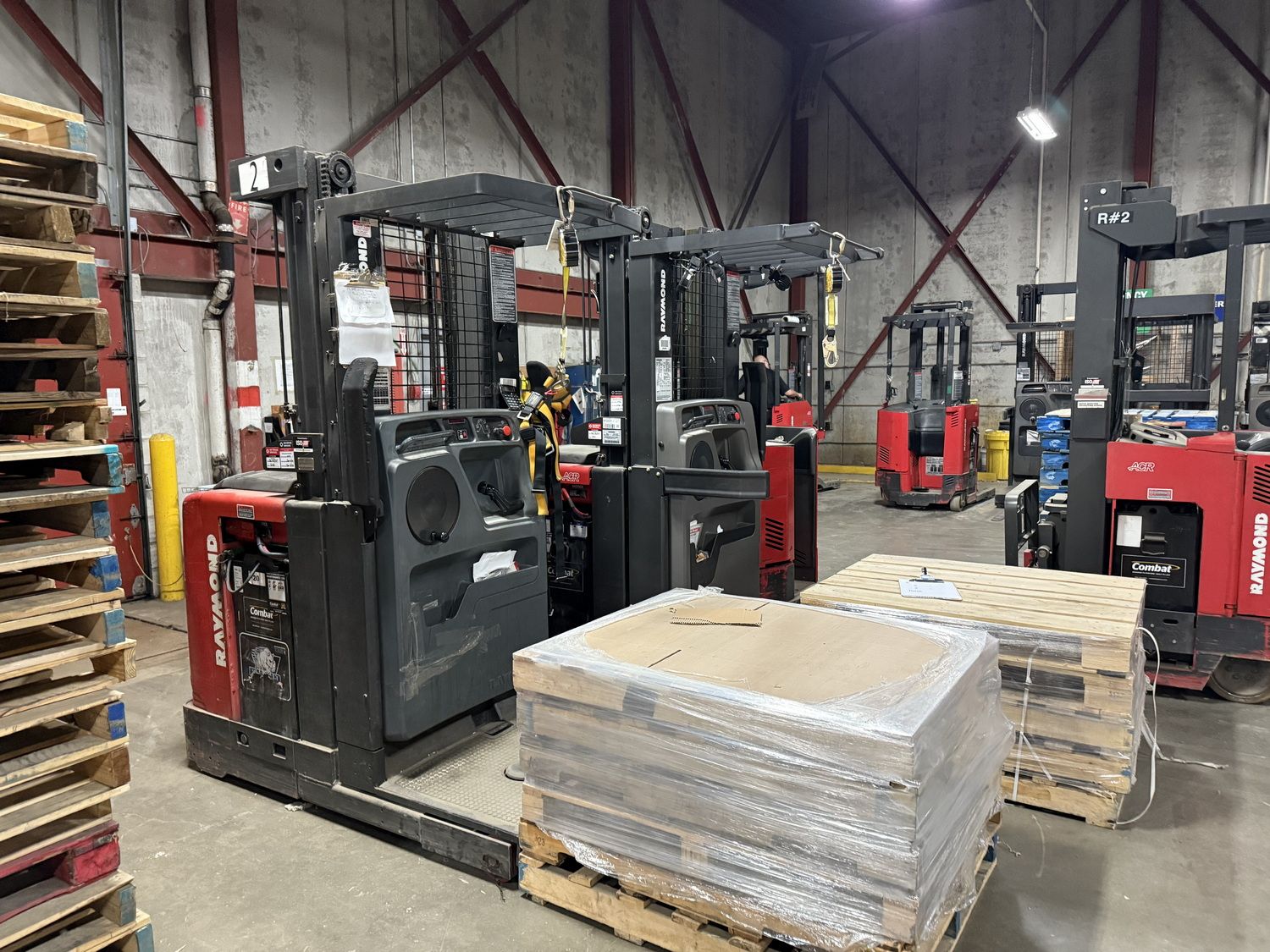 • (4) 2021 Raymond 720-R35TT electric reach trucks (24V) w/ 3,500 lbs cap, 231″ lift, side shift, & 24” reach