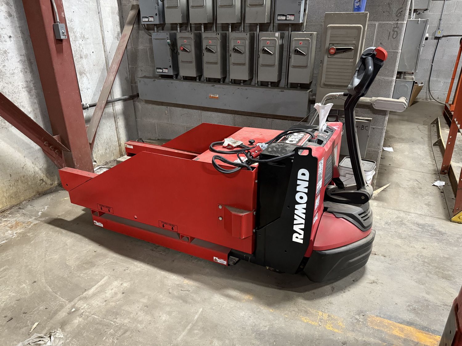 • 2007 Raymond 8500 electric riding pallet jack w/ 6,000lbs cap & 96” forks