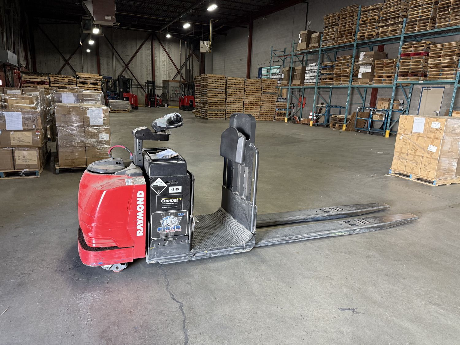 • 2020 Raymond 8510 electric riding pallet jack w/ 8,000lbs cap & 96” forks