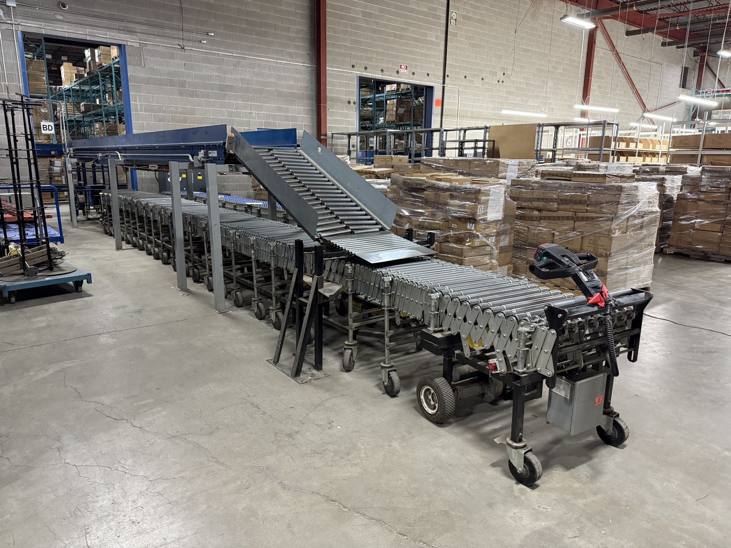 - Assorted portable rolling gravity fed flex conveyor